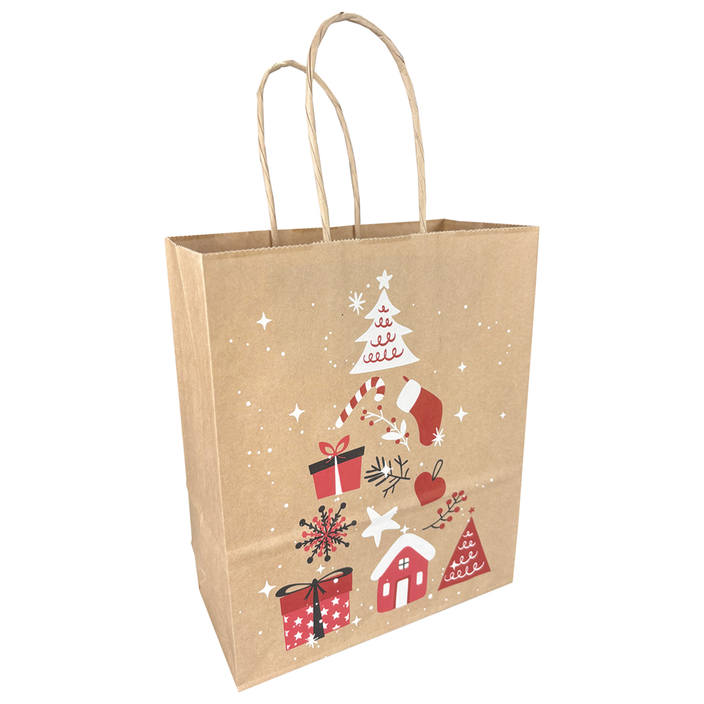 Christmas Tree | Papieren Draagtas Gedraaid Koord | 90grs 50 inhoud 22x10x31cm