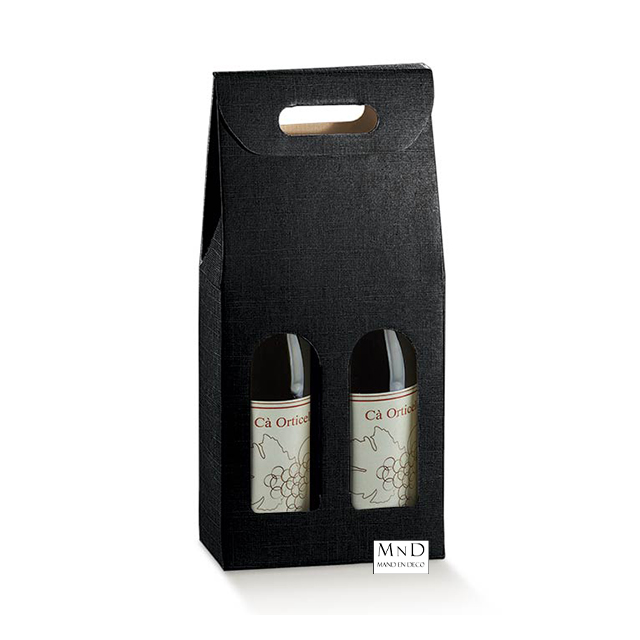 Draagdoos 2 fles zwart karton 18x9x38,5cm