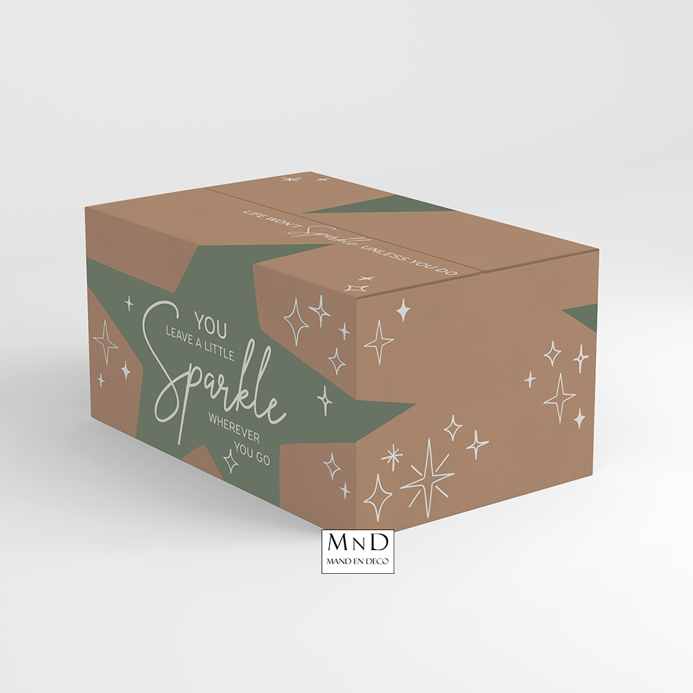 Wij zijn al sinds 1994 een begrip in originele cadeau verpakkingen en landelijke woonaccessoires en dat laten wij zien. Ons team werkt met veel passie en toewijding naar een persoonlijke en vlotte service waarin de klant centraal staat. Onder onze klanten behoren veel verschillende etablissementen waaronder boerderij winkels, slijterijen, supermarkten etc. Wij van Mand en Deco staan klaar om u te inspireren en te helpen bij het maken van uw superpakket. Door ons specialisme in cadeau verpakking en ons goed contact met de klant proberen we elk probleem te verhelpen. Onze klanten waarderen onze service en beoordelen ons met een hoge score bij het webwinkel keurmerk. U maakt een goede keuze als u kiest voor: Geschenkdoos Sparkle Groen 39x29x20cm